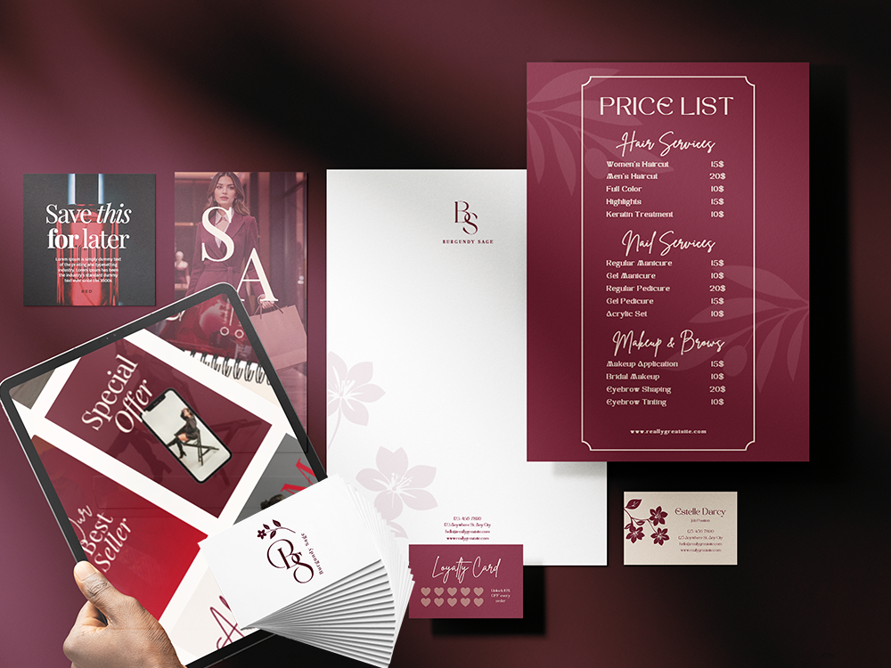 Ready-to-print designs for business cards, thank-you notes, and price lists that add a premium touch to your physical touchpoints